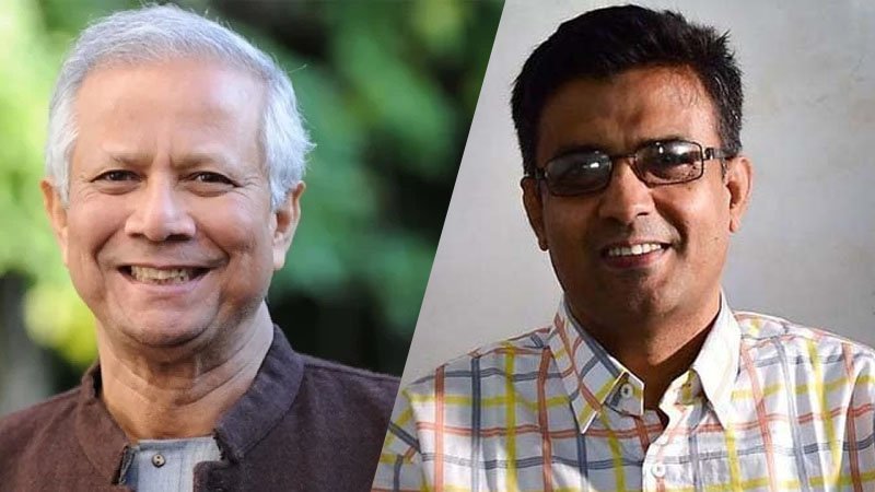 ড. মুহাম্মদ ইউনূস (বামে), বার্তাসংস্থা এএফপির ব্যুরো চিফ শফিকুল আলম (ডানে)। ছবি: সংগৃহীত