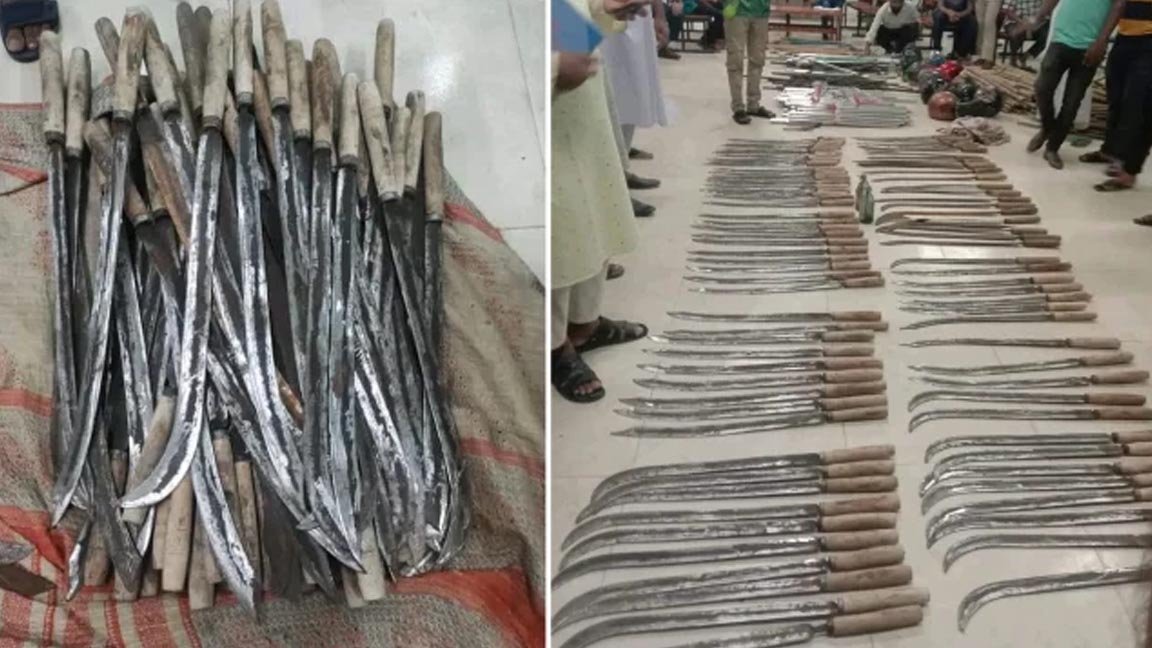 দিনাজপুরের হাজী মোহাম্মদ দানেশ বিজ্ঞান ও প্রযুক্তি বিশ্ববিদ্যালয়ের ছেলেদের হলগুলোতে অভিযান চালিয়ে ব্যাপক পরিমাণে দেশীয় অস্ত্র উদ্ধার করা হয়েছে