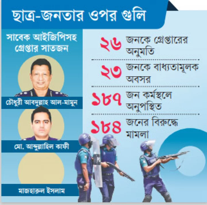 ছাত্র-জনতার অভ্যুত্থানে গত ৫ আগস্ট শেখ হাসিনার নেতৃত্বাধীন আওয়ামী লীগ সরকারের পতনের পর পুলিশের সাবেক-বর্তমান এই ২৬ কর্মকর্তার বিরুদ্ধেই হত্যার অভিযোগে মামলা হয়েছে।