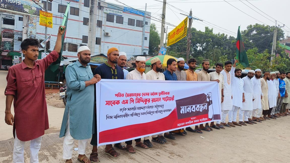 মানববন্ধনে বক্তারা বলেন, পতিত স্বৈরাচারের দোসর অবৈধ দুর্নীতিবাজ সাবেক এমপি ডা. সিদ্দিকুর রহমান পাটোয়ারী তার নিজ নামীয় জমিতে ও নিজ মালিকাধীন শিক্ষা প্রতিষ্ঠানে সরকারী ১ কোটি ১৪ লক্ষ ৬৪ হাজার ৬শত টাকা ব্যয়ে চারতলা বিশিষ্ট ভবনের একতলা নির্মাণ কাজের উদ্বোধন করা হয় গত বৃহস্পতিবার। সহকারী কমিশনার (ভূমি) ও দায়িত্বপ্রাপ্ত পৌর প্রশাসক আশরাফুল ইসলাম এ কাজের আনুষ্ঠানিক উদ্বোধন করেন।